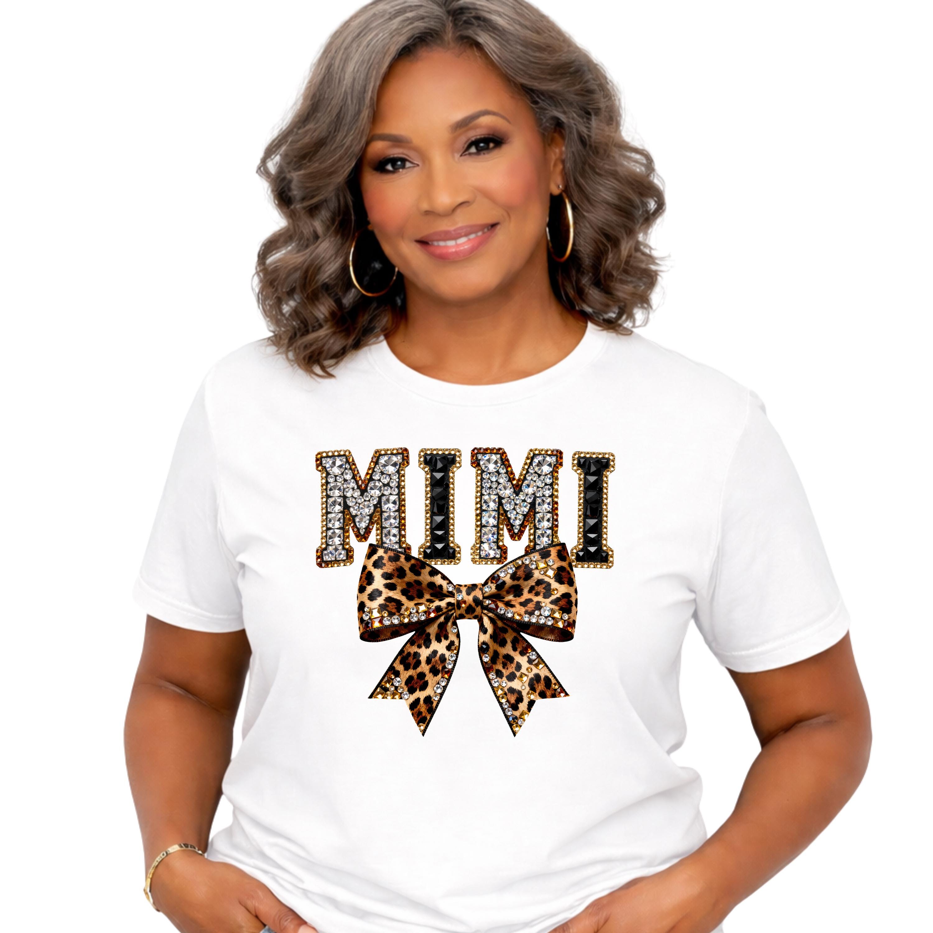 Make a statement with our stunning Bling MIMI Tee ✨ Featuring a bold rhinestone “MIMI” design paired with a trendy leopard print bow, this shirt is perfect for moms who love a little sparkle and style.